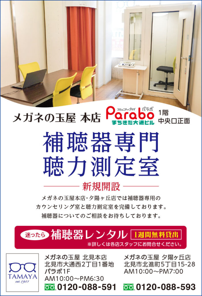 メガネの玉屋本店では、補聴器専用のカウンセリング室と聴力測定室を完備しております。補聴器についてのご相談を、お待ちしております。