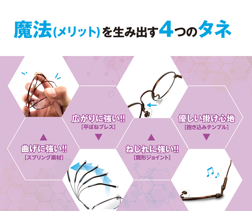 ばねの魔法♪曲がっても元通り!掛け心地が変わらない!見え方が変わらない!