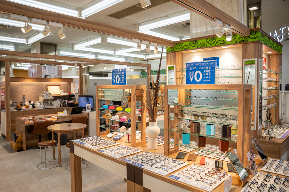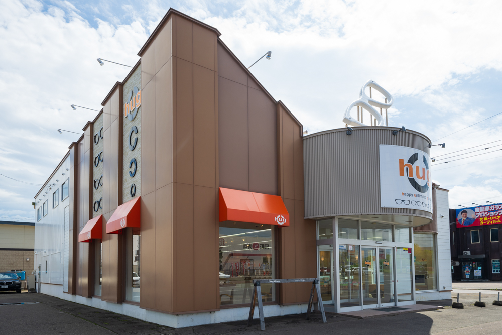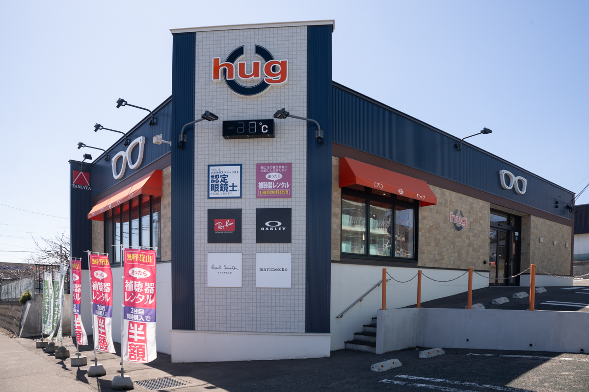 広い店内に管内最大級の品揃え。hugならメガネ全品、レンズ込価格なので安心です。