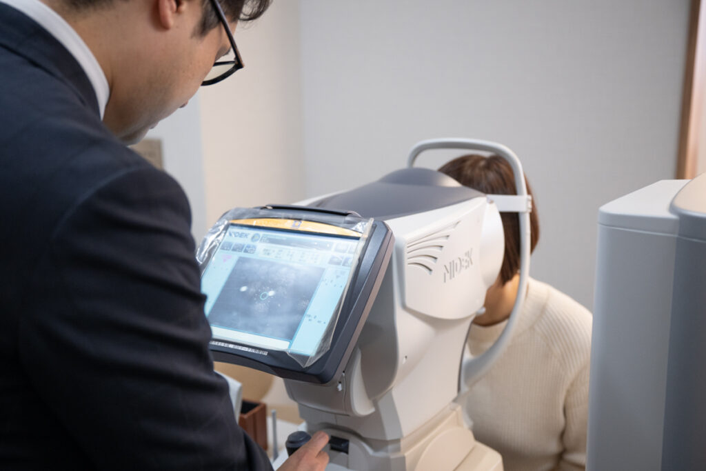 OPDの測定結果をもとに検査機を使用して、裸眼・現用眼鏡での